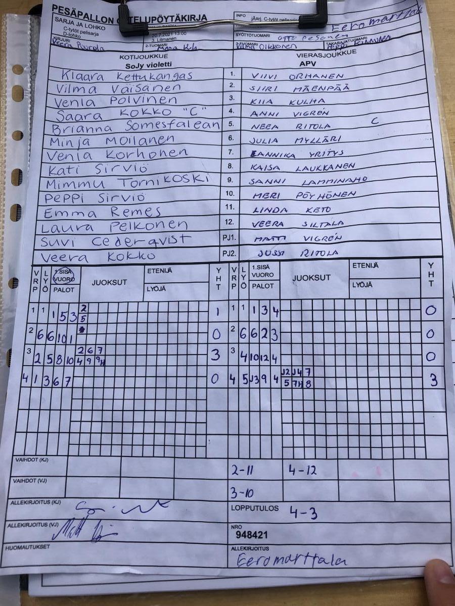 | 5. | SoJy violetti | 5 | 1 | 0 | 4 | 19 - 41 | 2 |