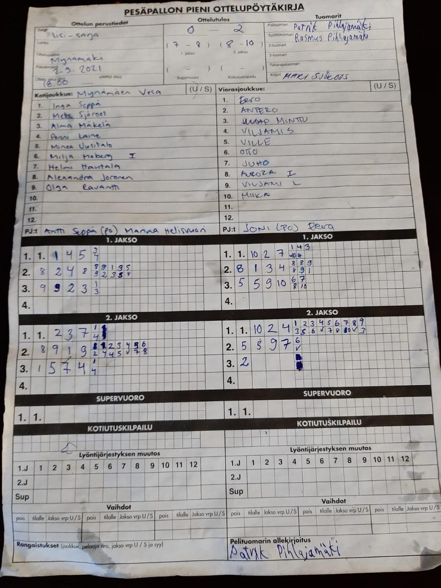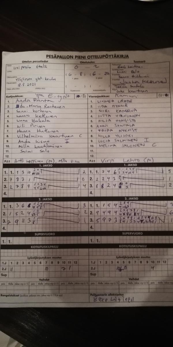 | 950613 | 15.8.2021 13:00 | Ypa E-tytöt | MyVe ET | 1-2 | näytä |