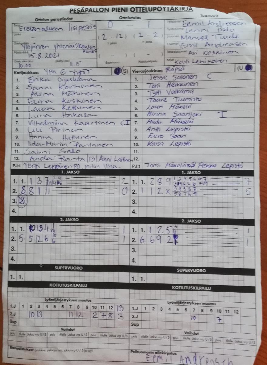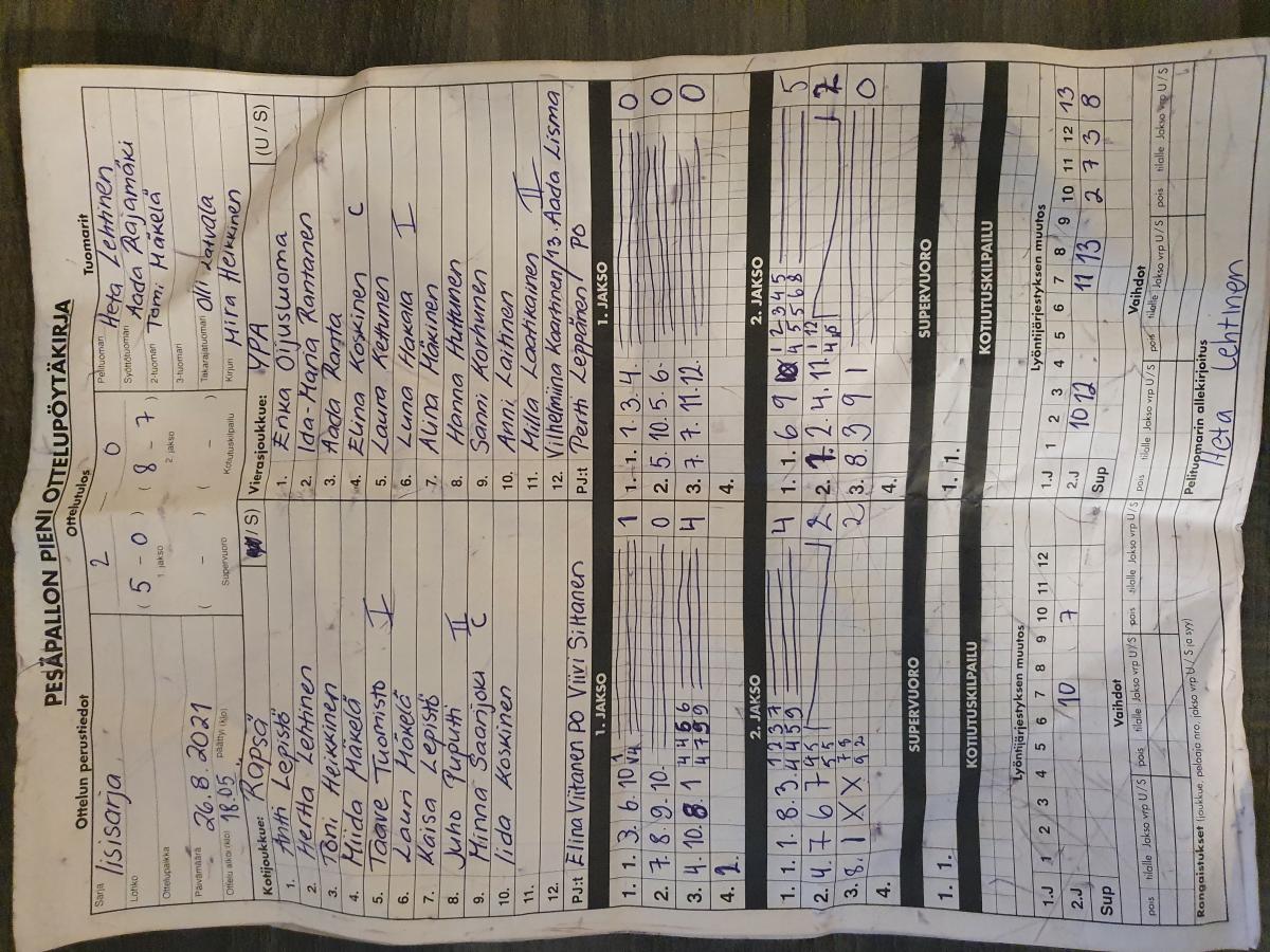 | 950561 | 28.8.2021 11:30 | Räpsä E-pojat | RPPaipe ED | ||