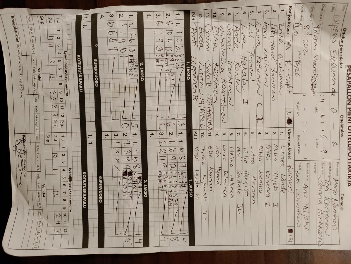 | 950545 | 8.9.2021 18:00 | Ypa E-tytöt | Kumuri | 0-2 | näytä |
