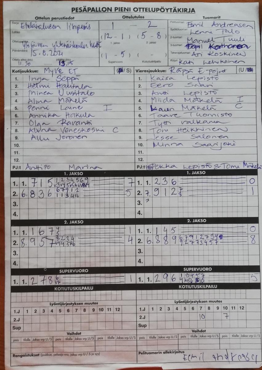 | 950626 | 15.8.2021 11:30 | MyVe ET | Räpsä E-pojat | 1-2 | näytä |