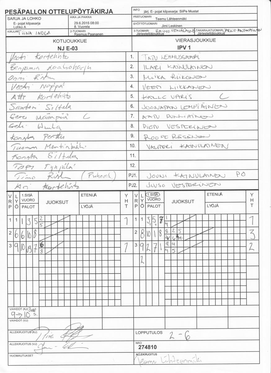| 7. | Espoo | 8 | 2 | 0 | 6 | 50 - 101 | 4 |