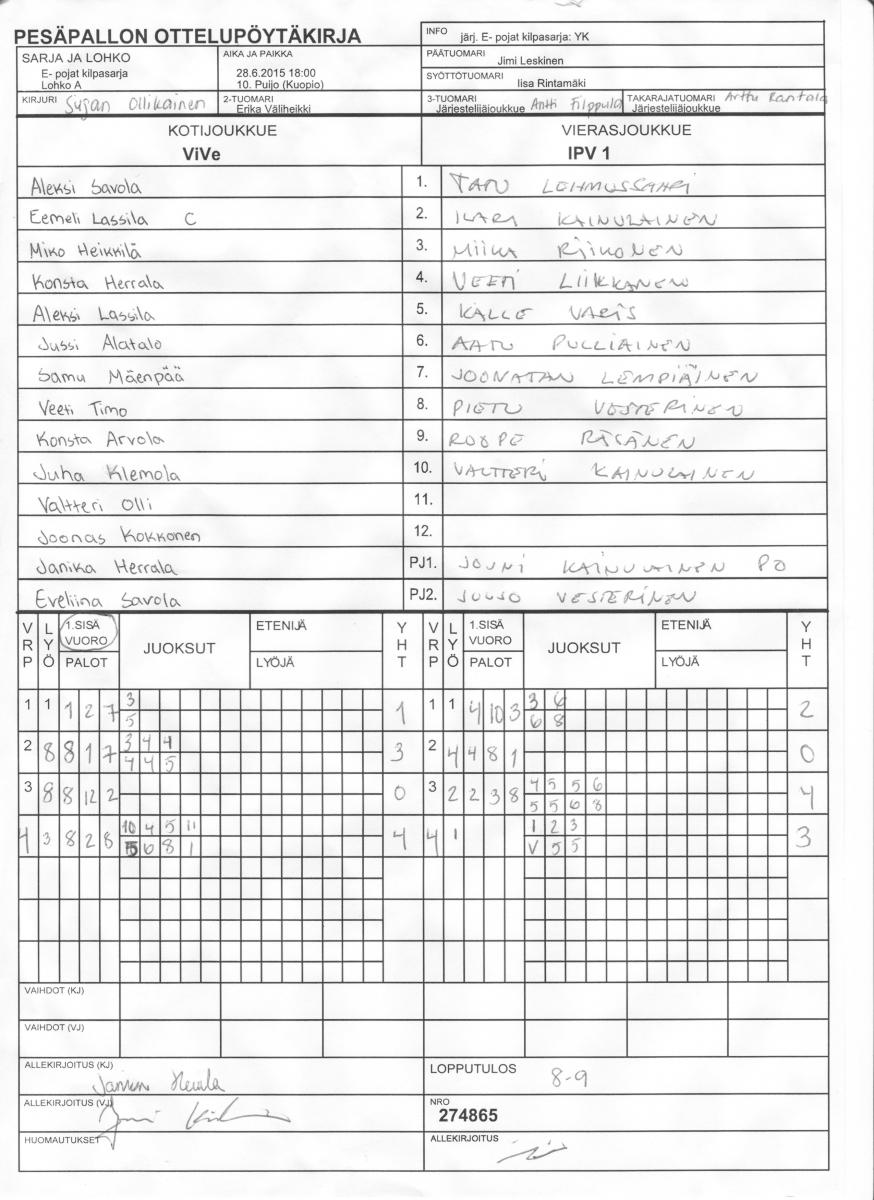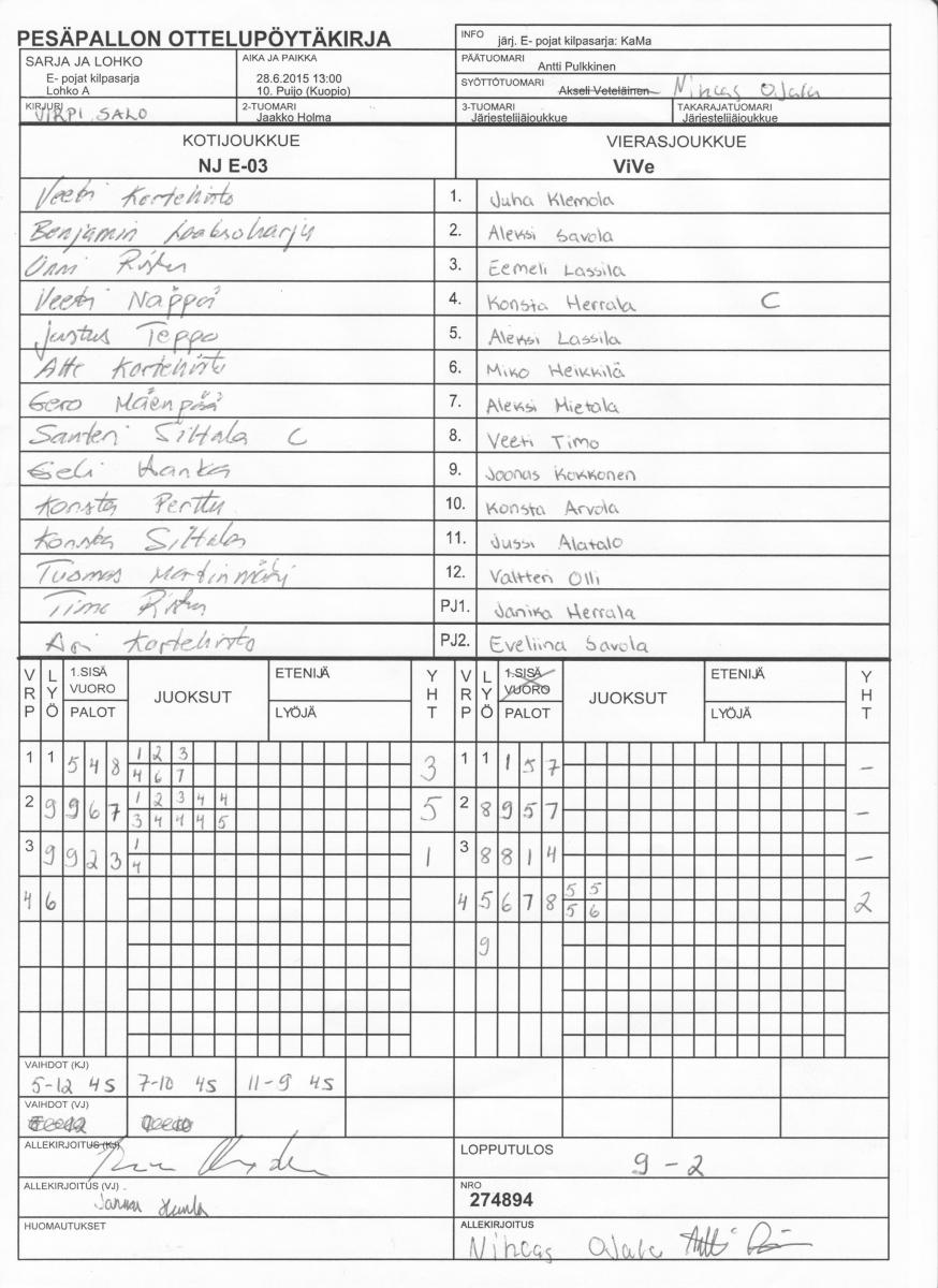 | # | Joukkue | O | V | T | H | JUOKSUT | P |