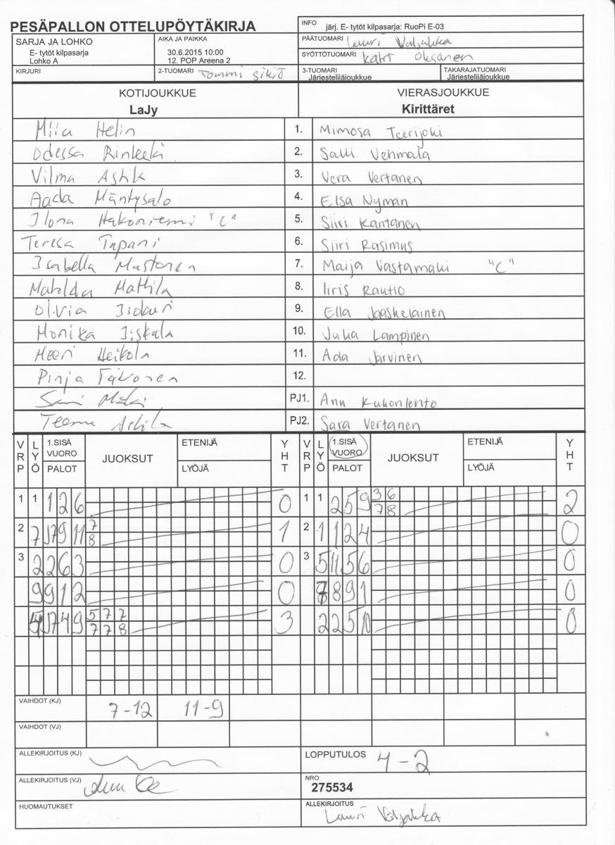 Yleinen tulostensyöttöavain ei ole käytössä kyseisessä turnauksessa tai sarjassa.
