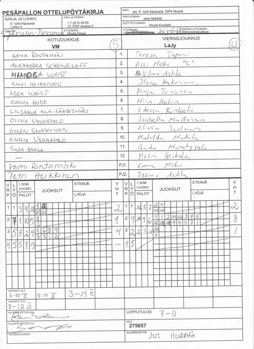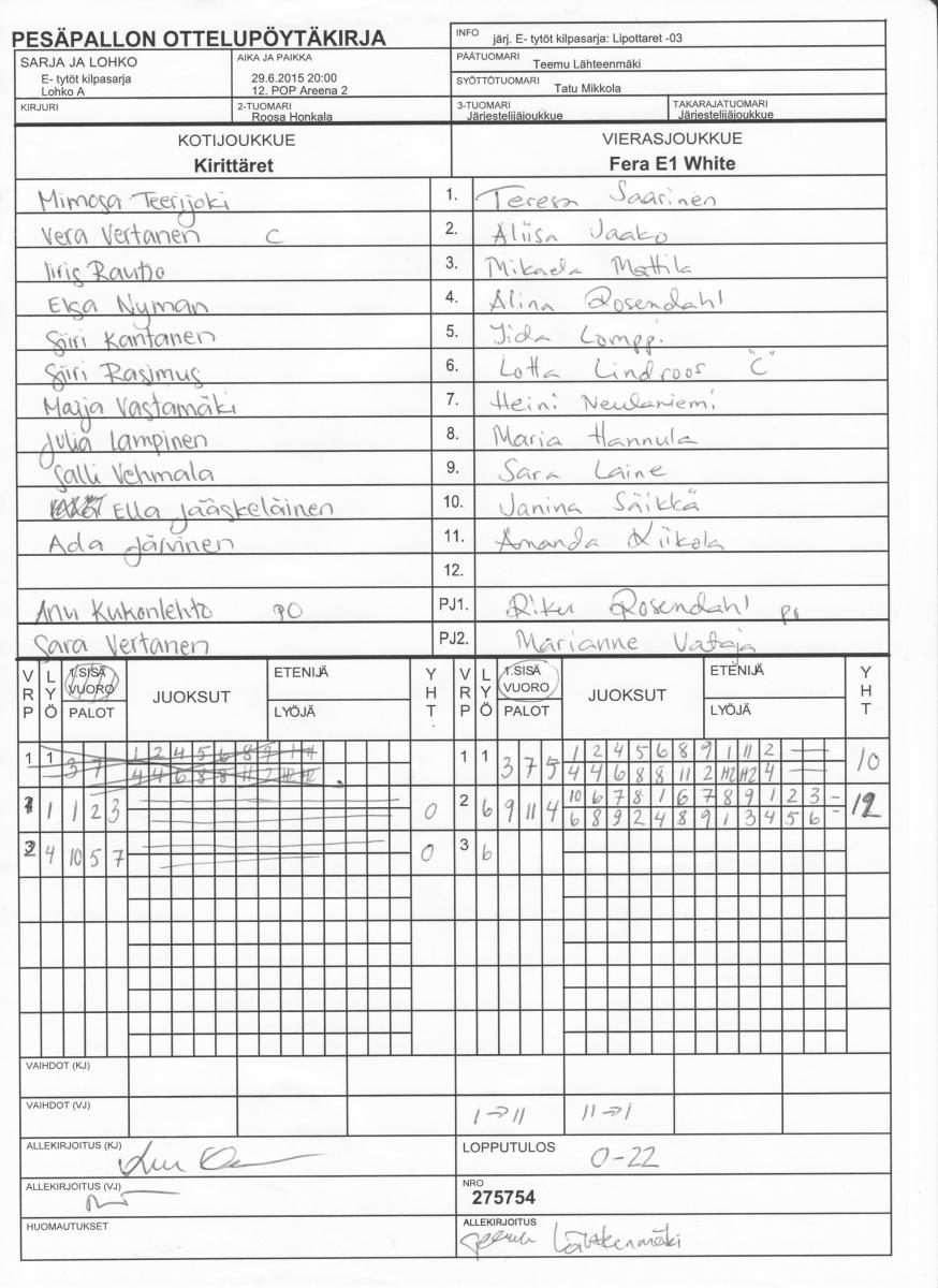 | 5. | Kirittäret | 7 | 2 | 1 | 4 | 38 - 62 | 5 |