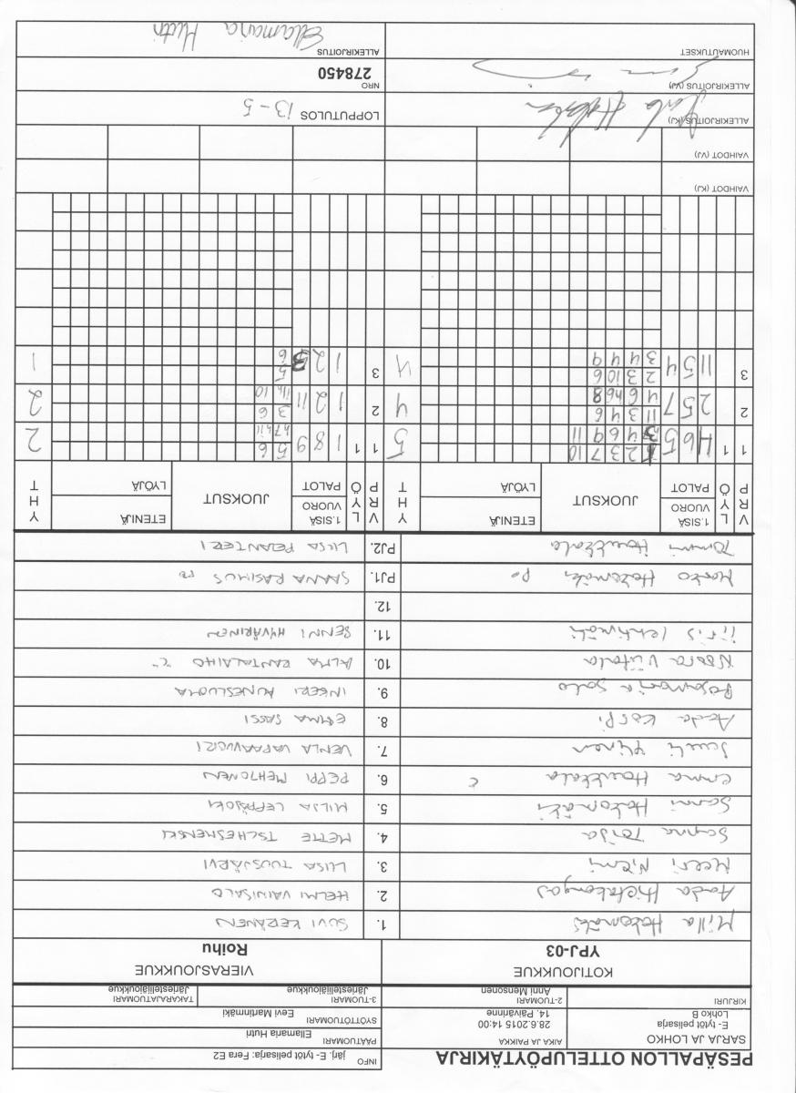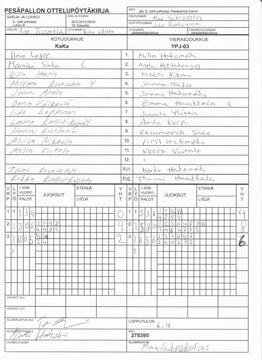 | # | Joukkue | O | V | T | H | JUOKSUT | P |