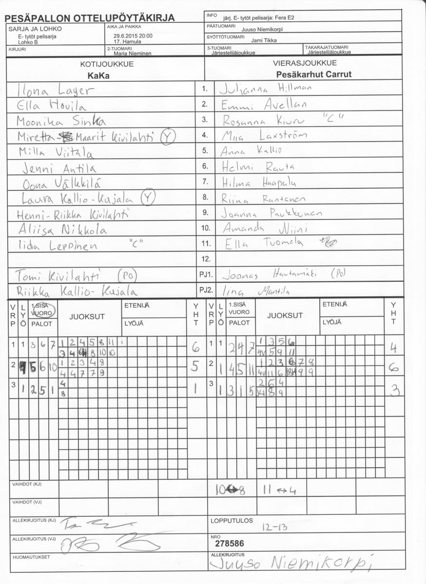 | 6. | Pesäkarhut Carrut | 7 | 2 | 0 | 5 | 66 - 73 | 4 |
