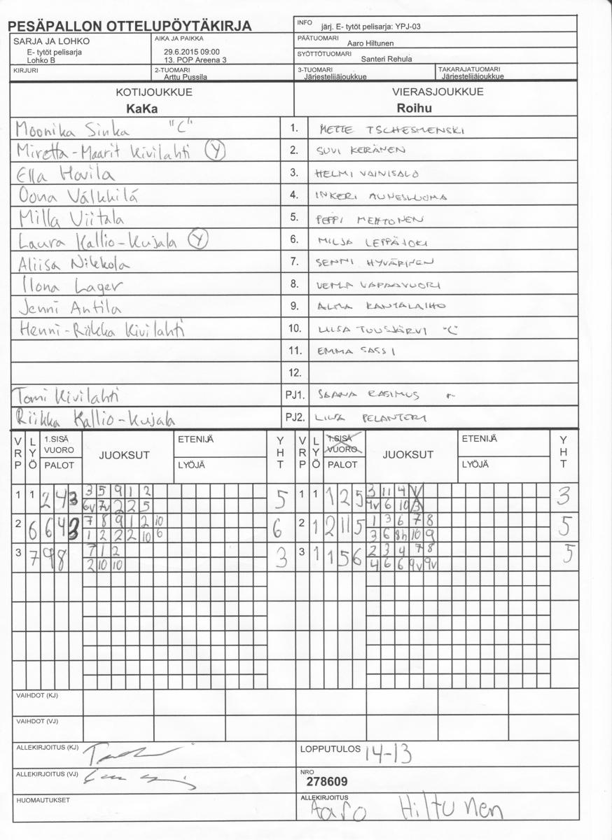 Yleinen tulostensyöttöavain ei ole käytössä kyseisessä turnauksessa tai sarjassa.