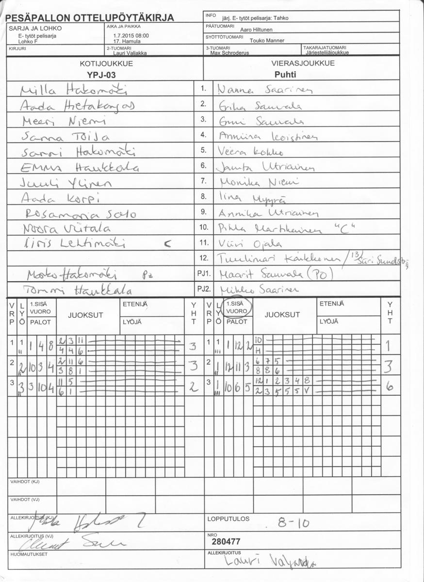 | 2. | PattU keltainen | 3 | 2 | 0 | 1 | 32 - 27 | 4 |