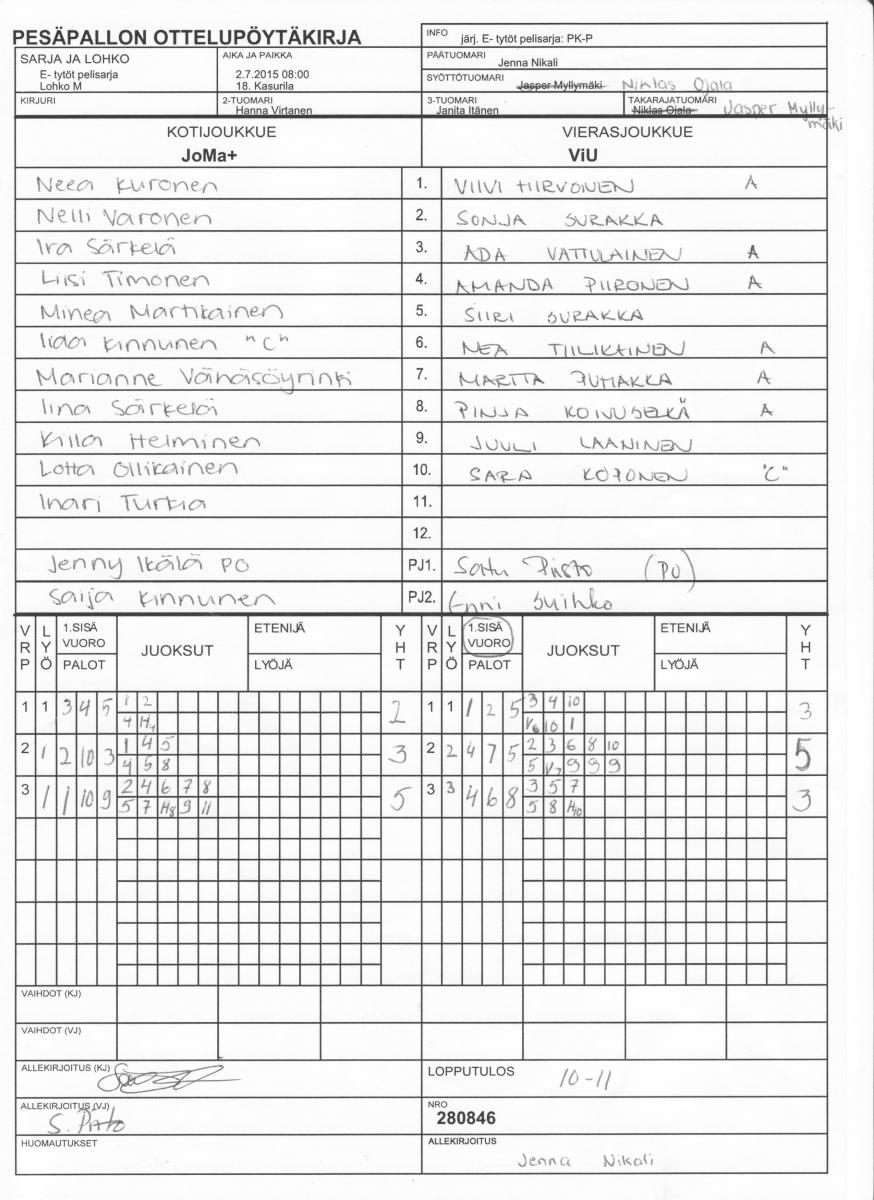 | # | Joukkue | O | V | T | H | JUOKSUT | P |
