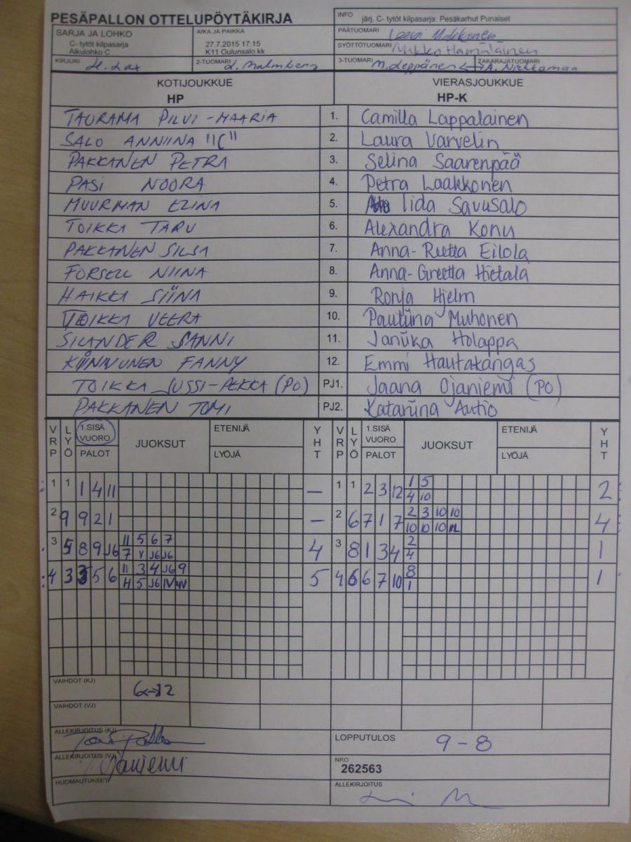 | 3. | Räpsä C-tytöt | 5 | 3 | 0 | 2 | 39 - 23 | 6 |
