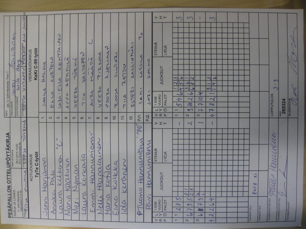 | 2. | KeKi C-99 tytöt | 3 | 2 | 0 | 1 | 19 - 15 | 4 |