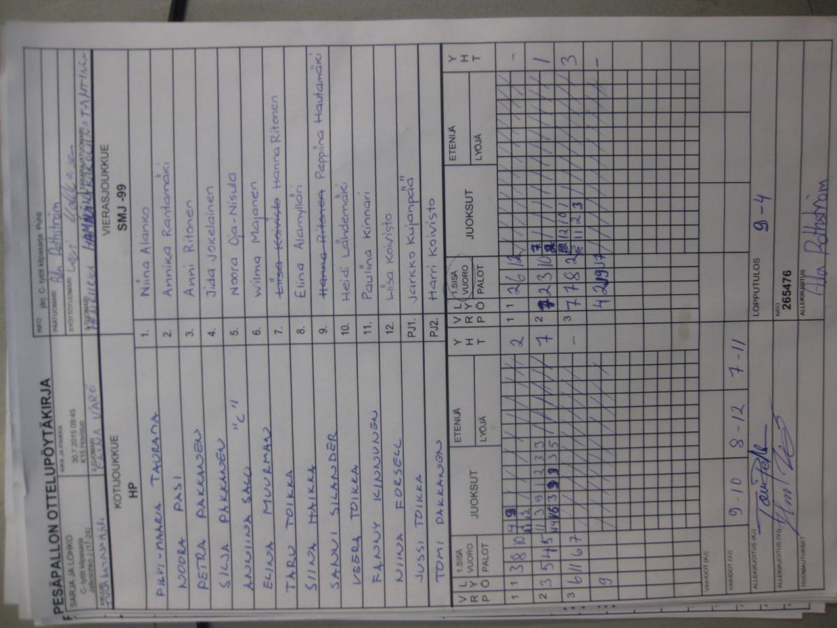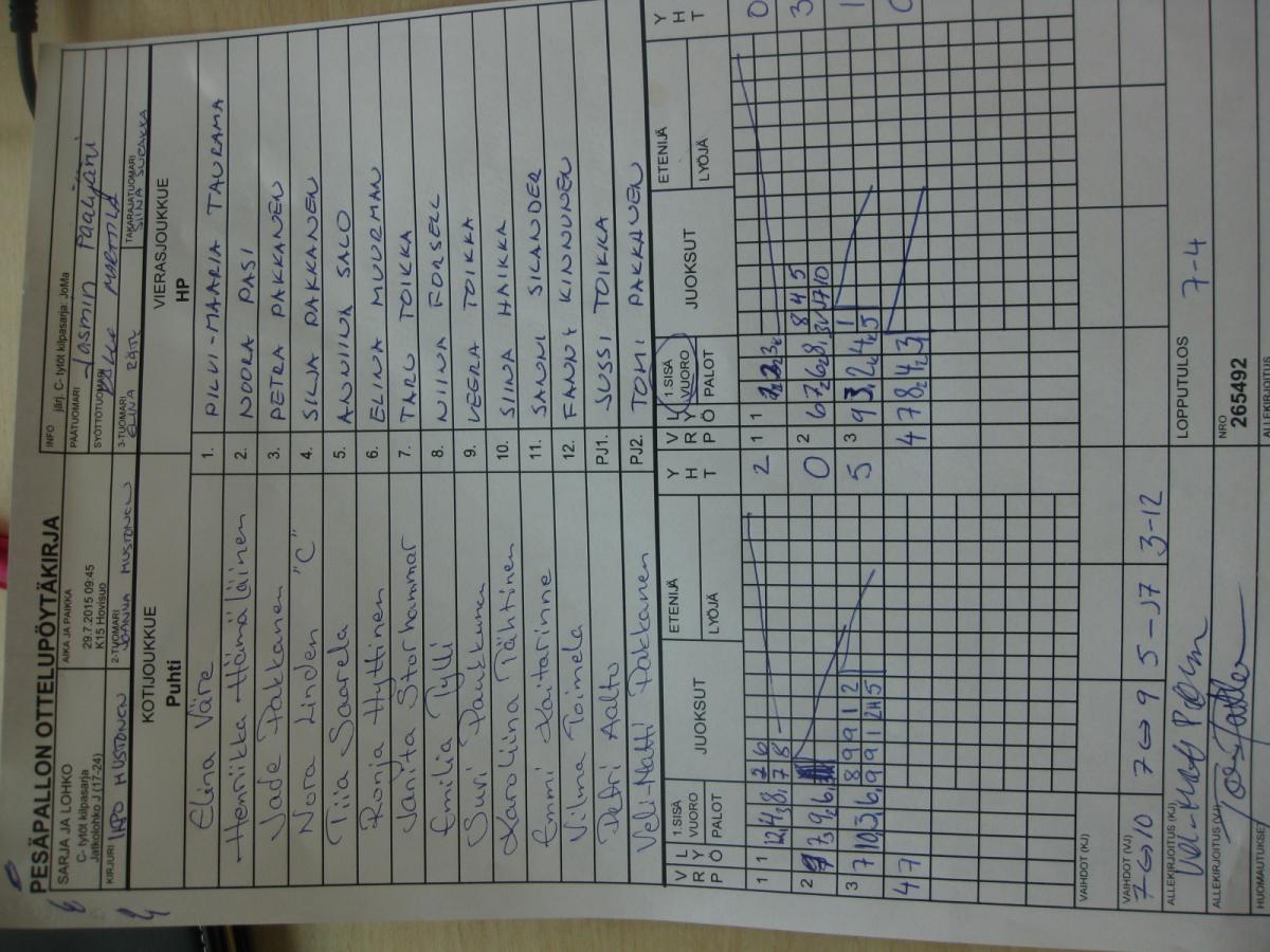 | # | Joukkue | O | V | T | H | JUOKSUT | P |