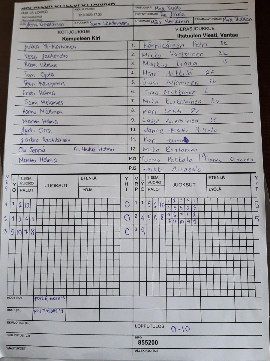| Harmaakarhut | Harmaakarhut | 12.9.2020 17:30 | Kempeleen Kiri | Iltatuulen Viesti, Vantaa | 0-10 | näytä |