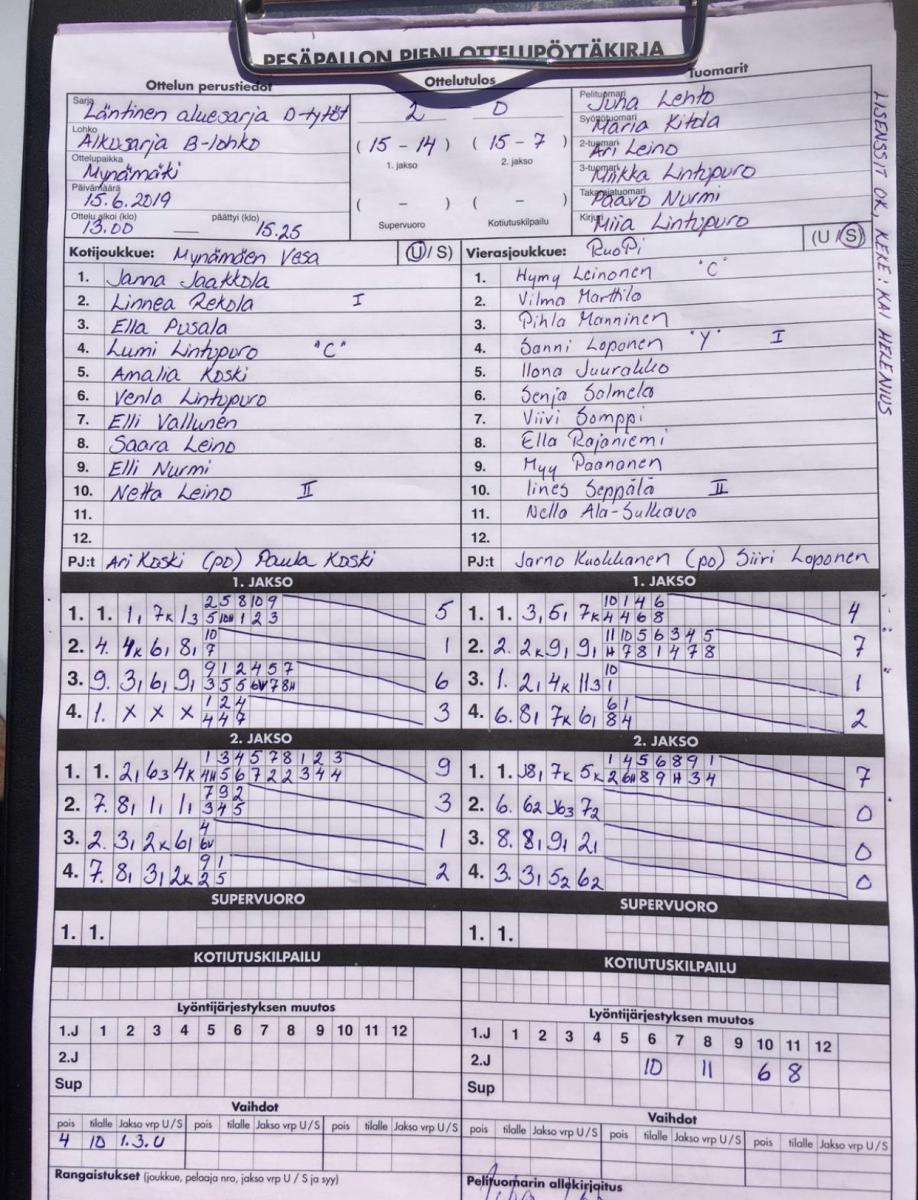 | 12.6.2019 18:00 | MyVe Dt | Räpsä D-tytöt | 2-0 (22-5, 7-2) | näytä | |