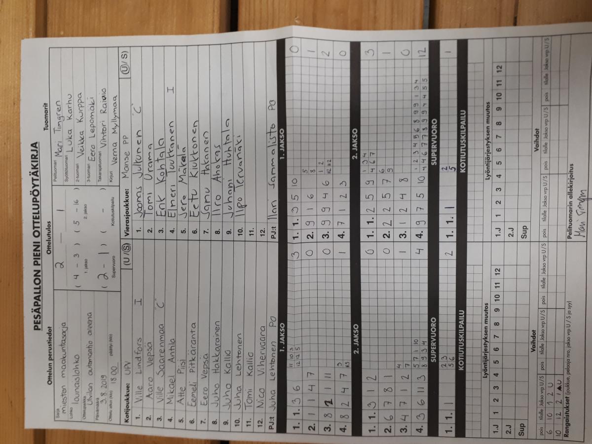 | 10.8.2019 11:00 | Manse PP | Pesäsudet | 2-0 (17-1, 7-2) | näytä | |