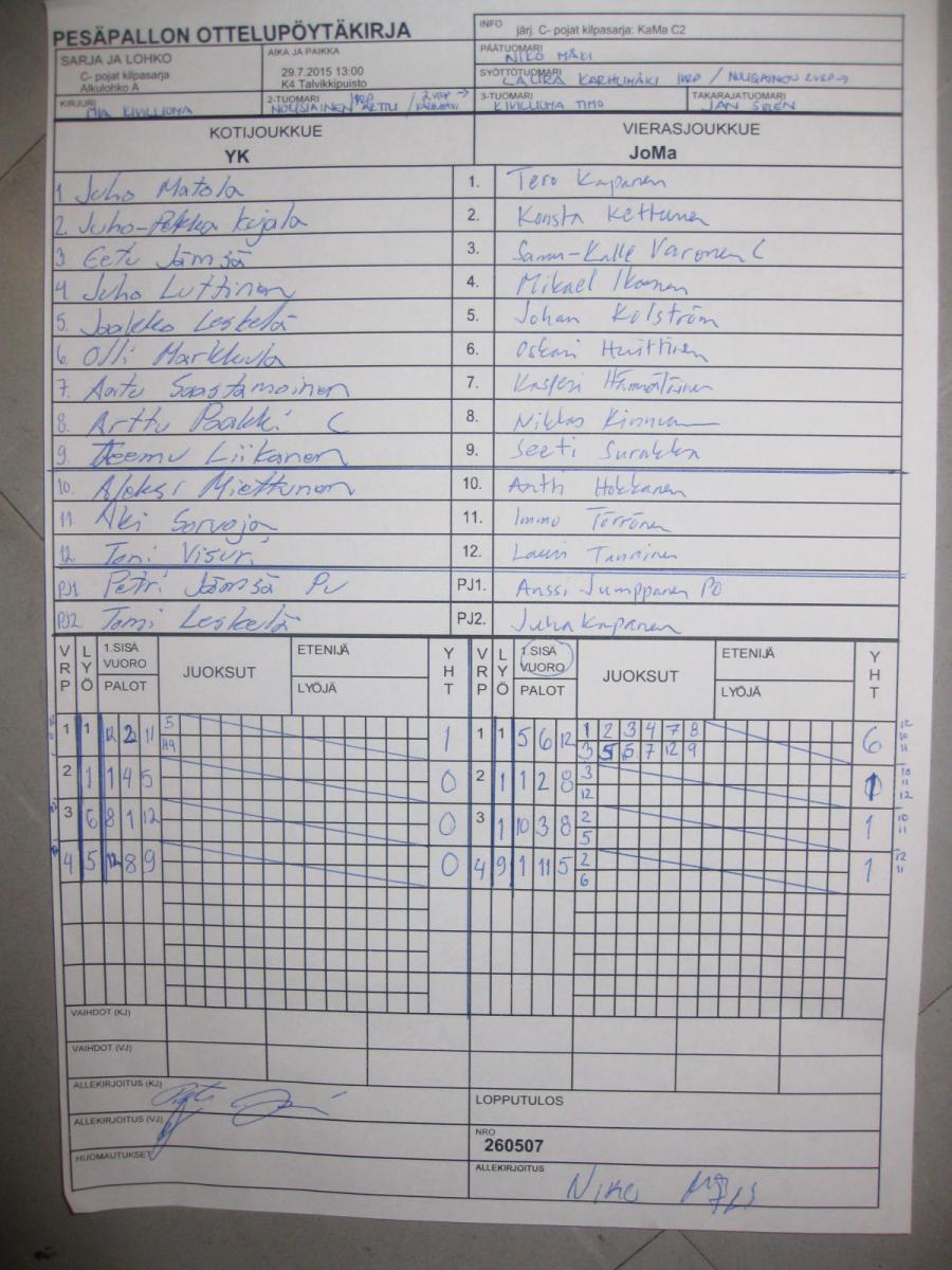 | C- pojat kilpasarja - Alkulohko A | 29.7.2015 09:45 | K2 Niittyaro 1 | JoMa | ToPo | YK |