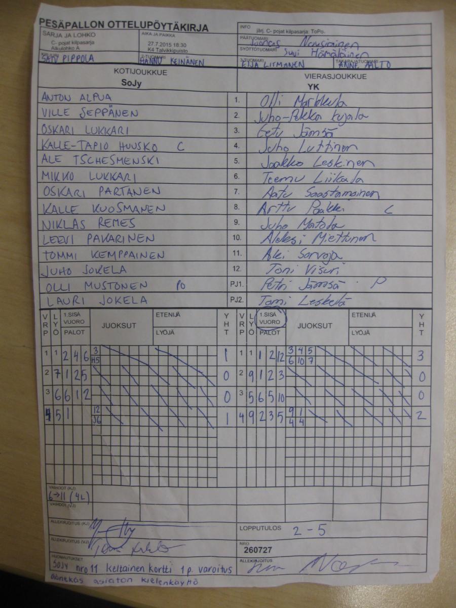 | C- pojat kilpasarja - Alkulohko A | 28.7.2015 14:15 | K3 Niittyaro 2 | SMJ P00 | JoMa | SoJy |