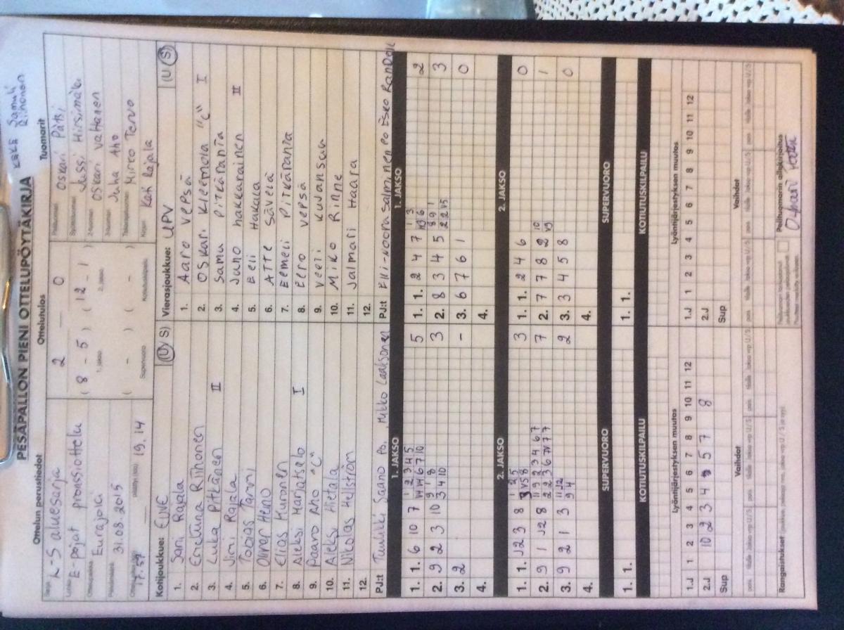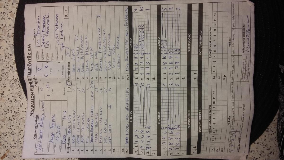 | 27.7.2015 18:00 | UP-V E-pojat | EuVe | 0-2 (2-4, 0-14) | ||