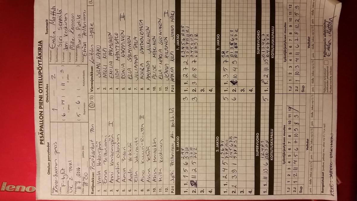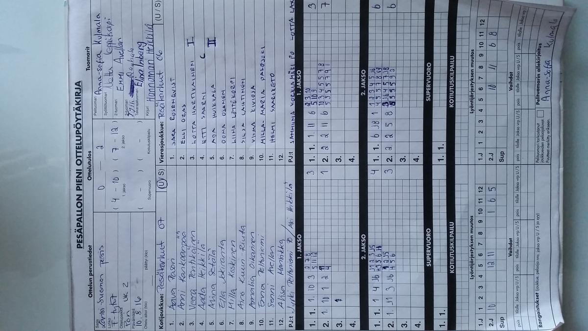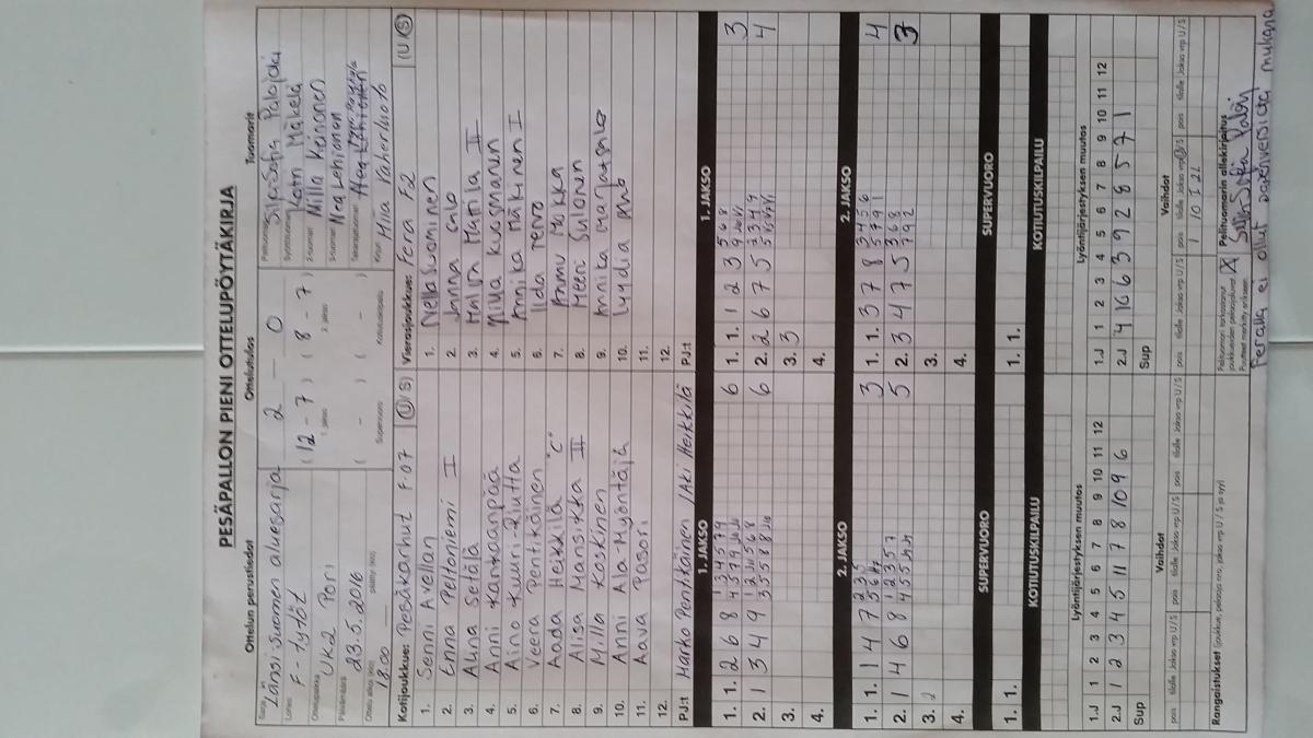 | 16.5.2016 18:00 | LaJy | Pesäkarhut F07 | 2-0 (10-3, 7-6) | ||