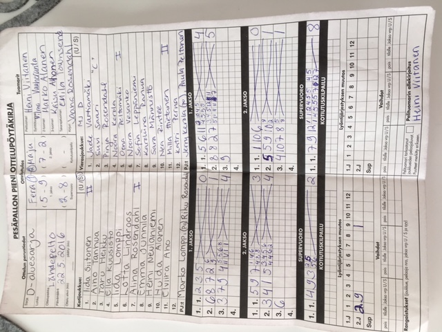 | 20.6.2016 18:00 | Mailajuniorit D-tytöt | Fera D1 | 2-1 (5-7, 8-4, 5-5, 3-2) | ||