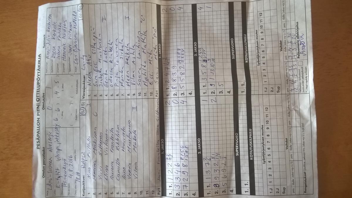 | 3.5.2016 18:00 | MJ E-tytöt | Räpsä E | 0-2 (6-19, 7-13) | ||