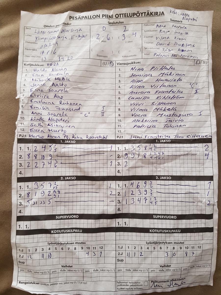 | 16.8.2016 18:00 | MJ E-tytöt | Räpsä E | 0-2 (0-9, 3-16) |