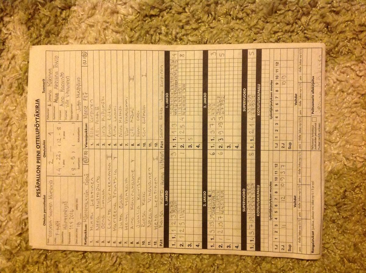 | 11.5.2016 | Hämeenkyrö | Tampere | 2-1 (4-22, 12-8, 8-5) | näytä | |