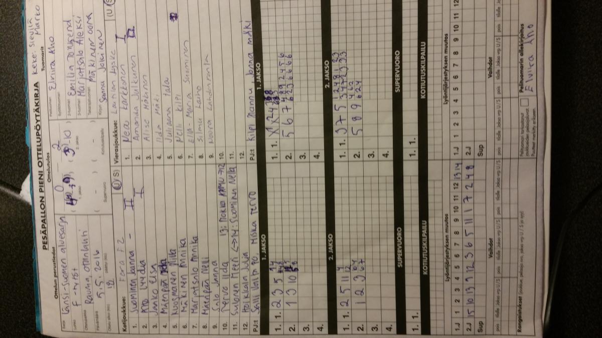 | 30.5.2016 18:00 | fera f2 | UP-V F-tytöt | 2-0 (10-2, 13-7) | näytä | |