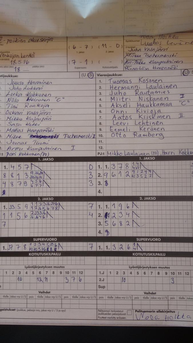 | 18.5.2016 | Tahko Brown | Kepe E-pojat | 2-1 (6-7, 11-0, 7-1) | näytä | |
