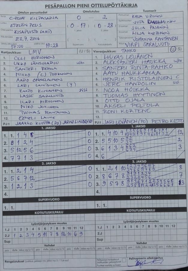 | 23.7.2016 | LMV | Tahko1 P00 | 0-2 (0-17, 0-28) | näytä | |