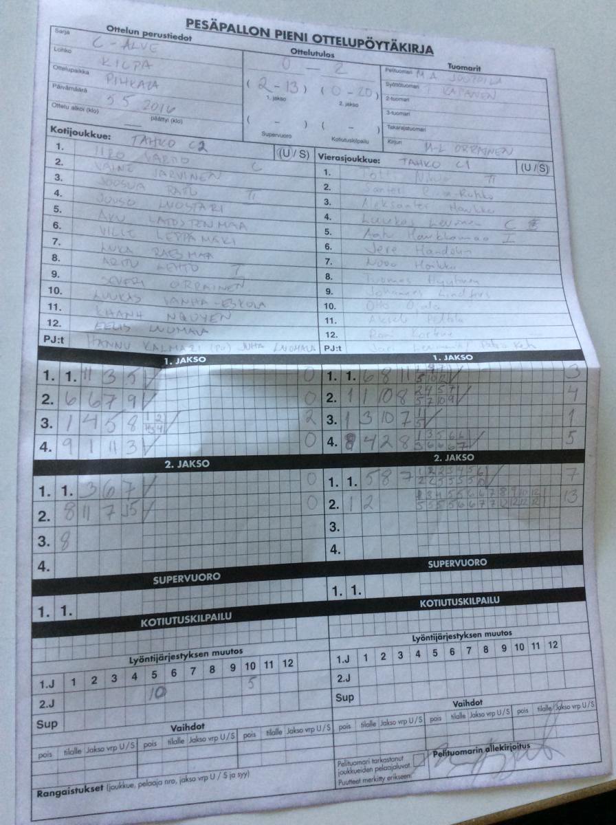 | 5.5.2016 | Tahko C2 | Tahko1 P00 | 0-2 (2-13, 0-20) | näytä | |