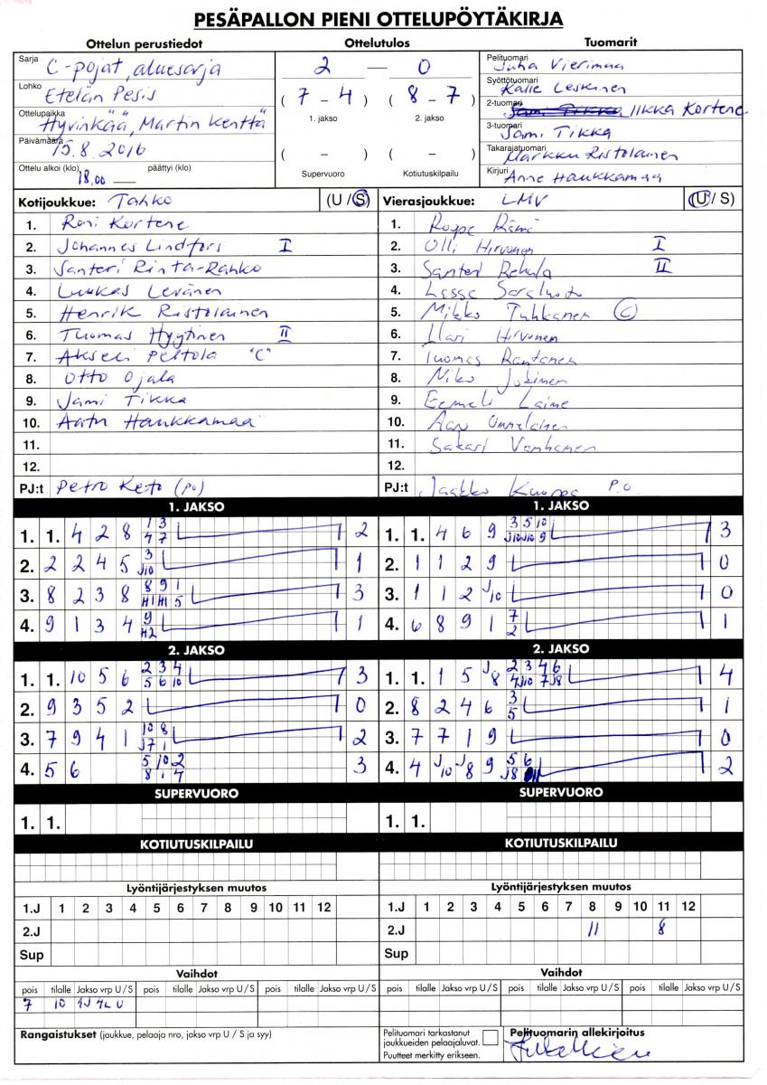 | 26.8.2016 | Tahko1 P00 | IPV/Pesä Ysit | 1-0 (16-2, 7-7) | näytä |