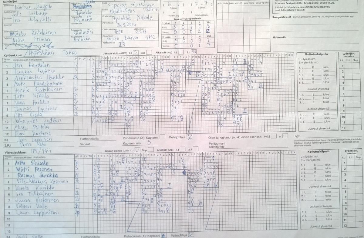 | 7.8.2016 | Tahko1 P00 | IPV/Pesä Ysit | 2-0 (21-1, 21-0) | näytä | |