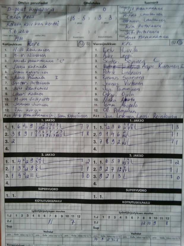 | 5.6.2016 | KePe D | KPL | 1-0 (15-5, 3-3) | näytä | |