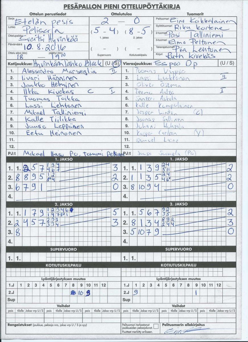 | 10.8.2016 | Tahko Black | Espoo DP | 2-0 (5-4, 8-5) | näytä | |