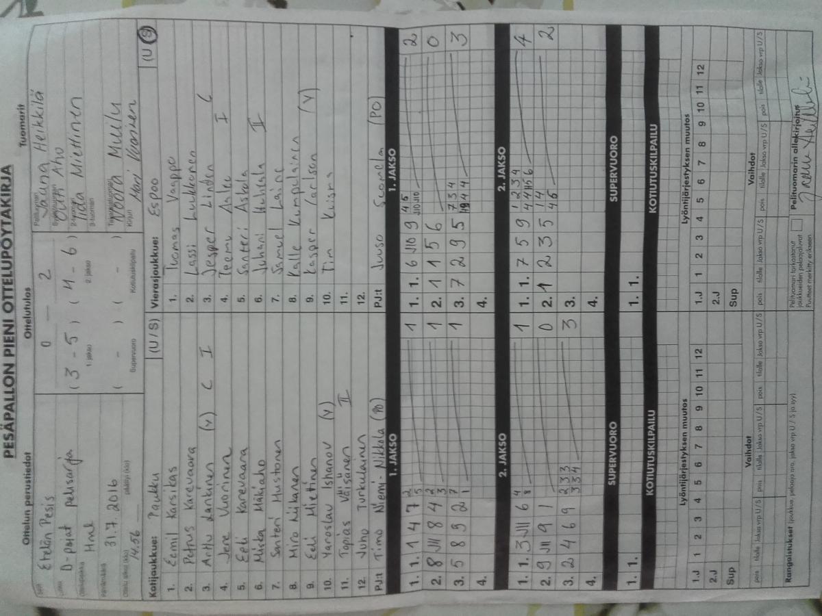 | 24.7.2016 | Espoo DP | LMV DP sininen | 0-2 (1-8, 0-11) | näytä | |