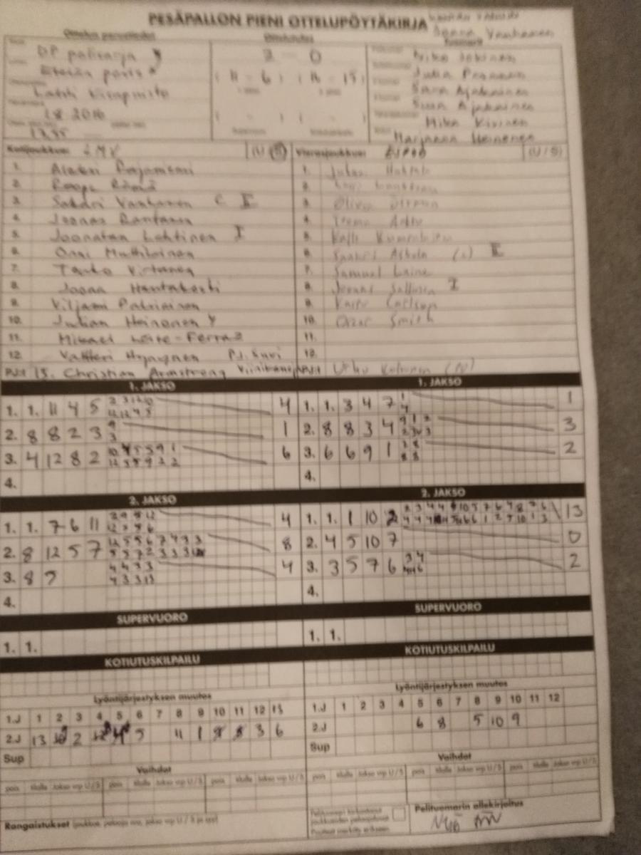 | 1.8.2016 | LMV DP sininen | Espoo DP | 2-0 (11-6, 16-15) | näytä | |