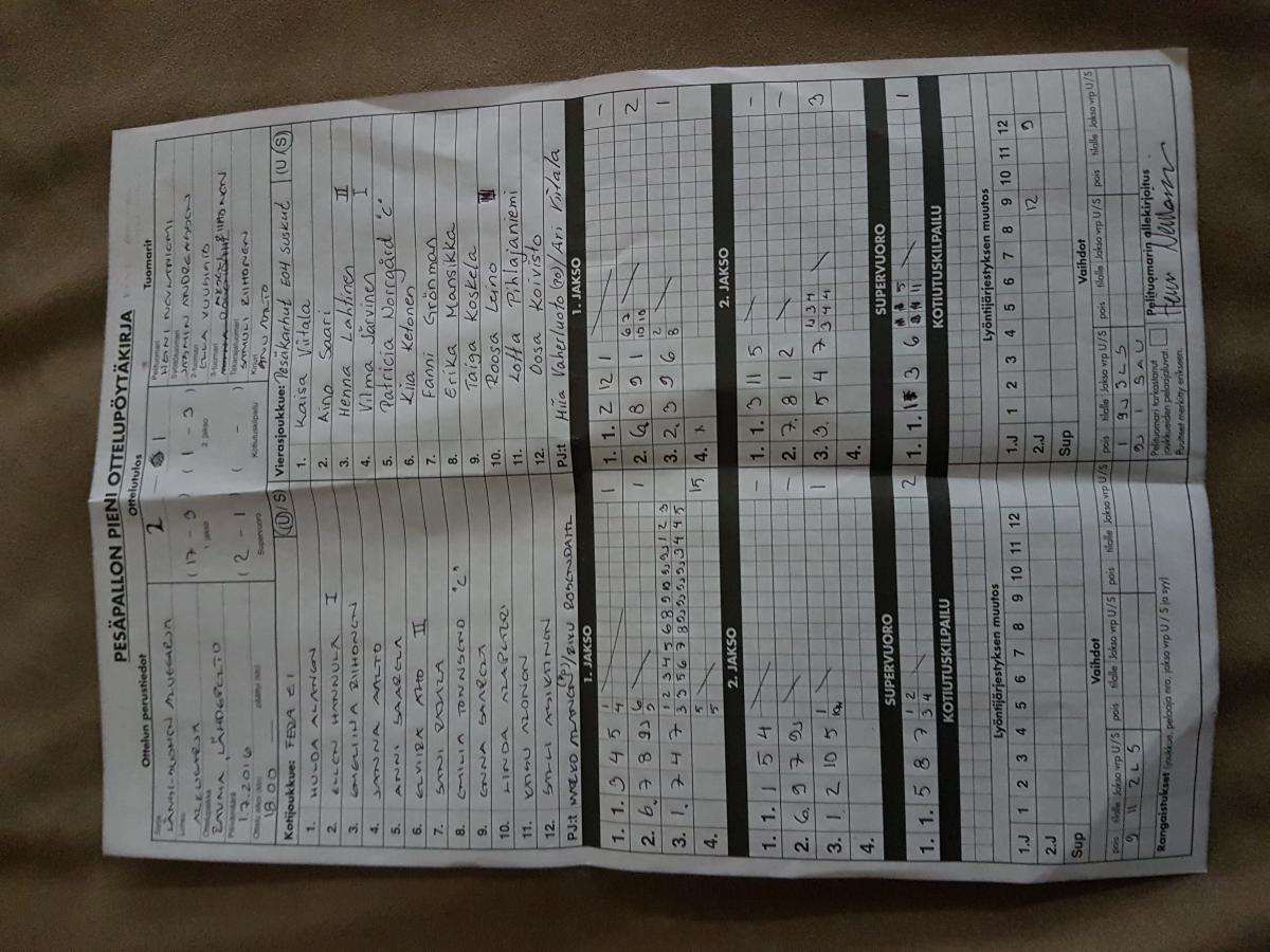 | 12.5.2016 18:00 | Fera E1 | KK-V E-tytöt | 2-0 (21-1, 32-0) | näytä | |