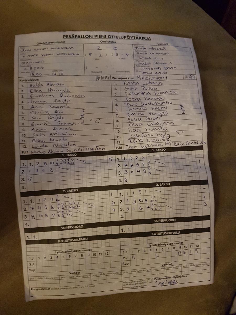 | 4.8.2016 18:00 | MJ E-tytöt | Fera E1 | 0-2 (2-7, 3-7) | ||
