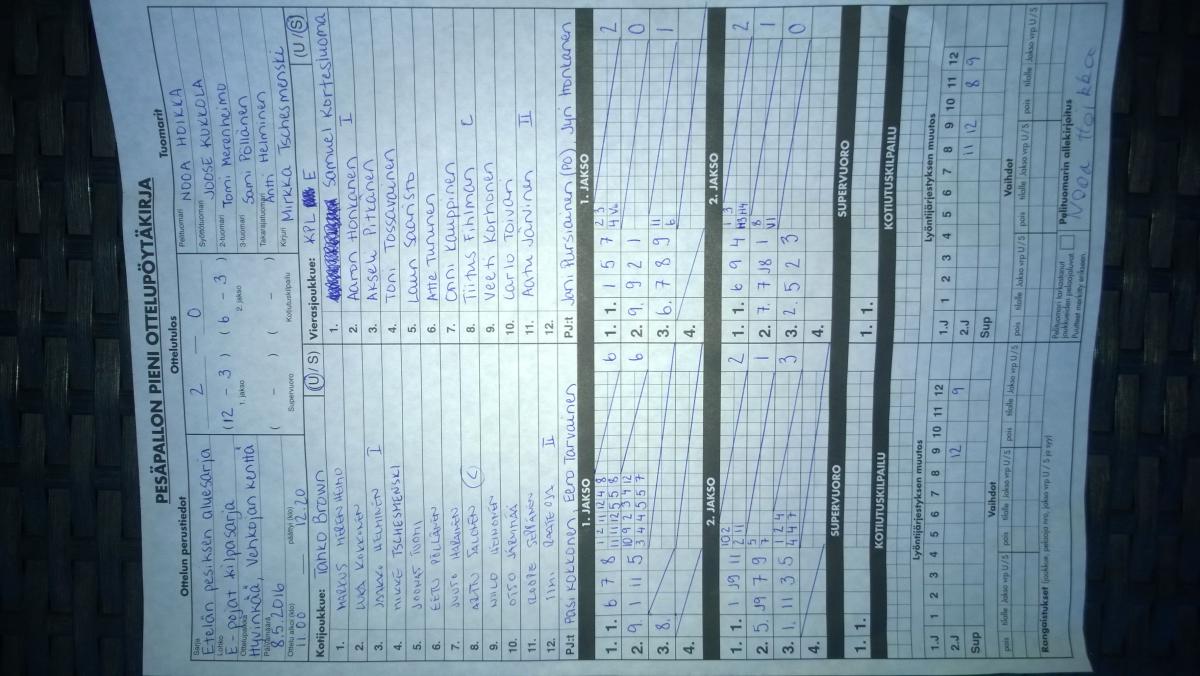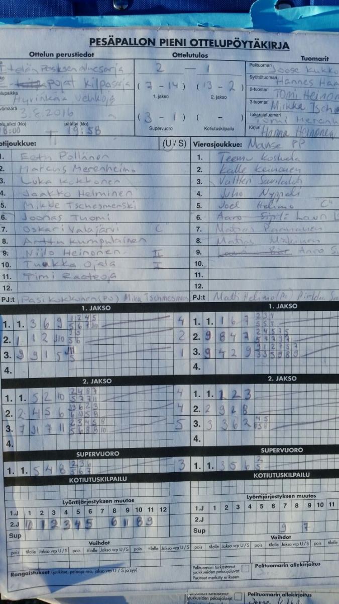 | 31.7.2016 | HP E-pojat | Tahko Brown | 0-2 (3-12, 9-17) | ||