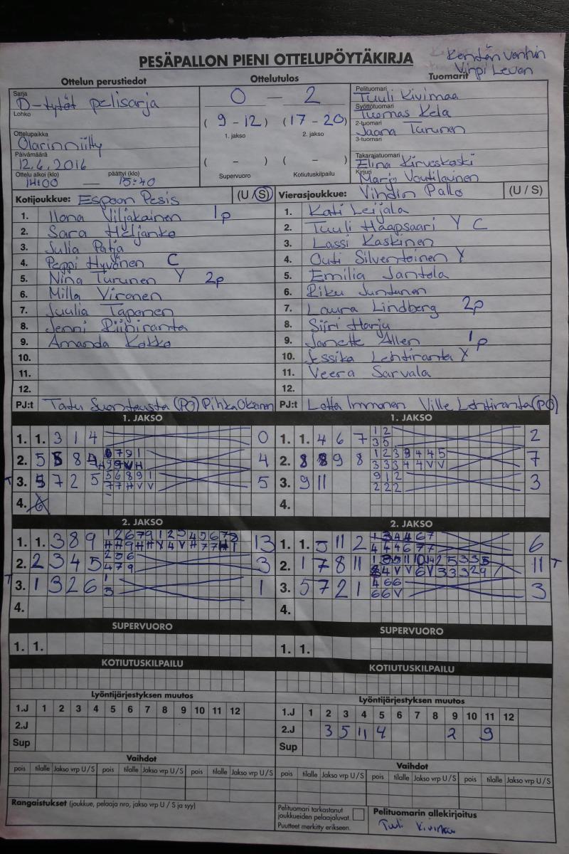 | 21.8.2016 | Paukku D-t | ViPa DT | 1-2 (18-6, 18-25, 0-0, 9-10) | ||