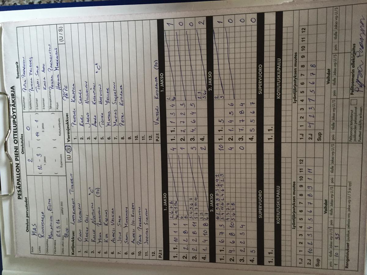 | 30.5.2016 | Päiväkumpu | Vipa II | 2-1 (22-4, 3-7, 1-0) | ||