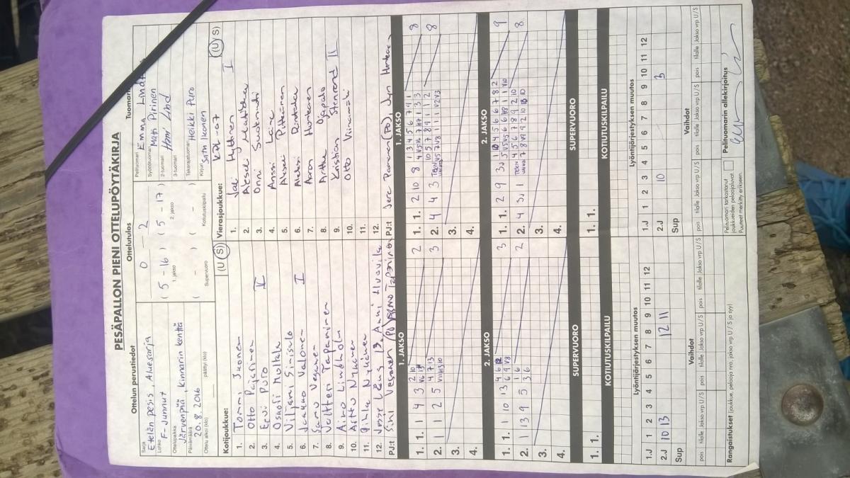 | 14.6.2016 | Kepe F-pojat | KPL 07 | 0-2 (6-21, 2-14) | näytä | |