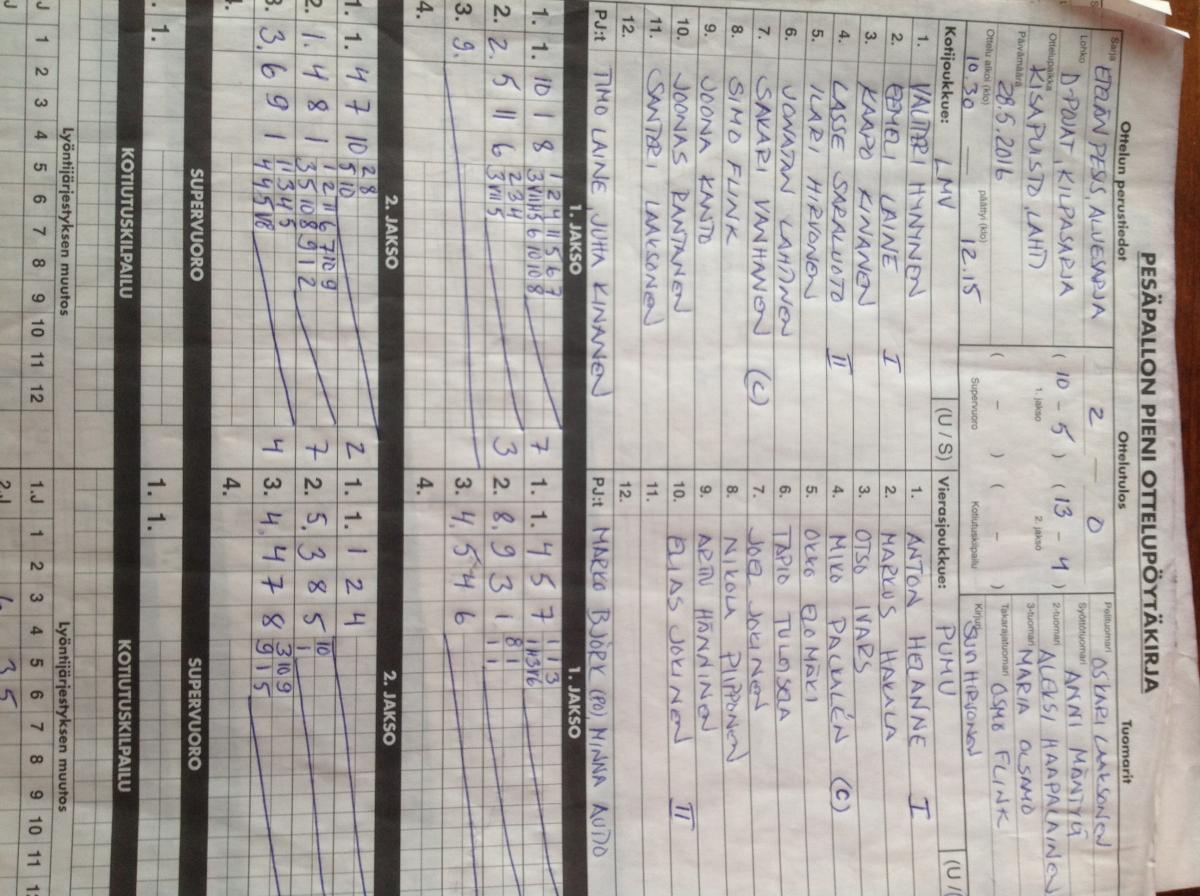 | 28.5.2016 | LMV DP valkoinen | PuMu DP | 2-0 (10-5, 13-4) | näytä | |