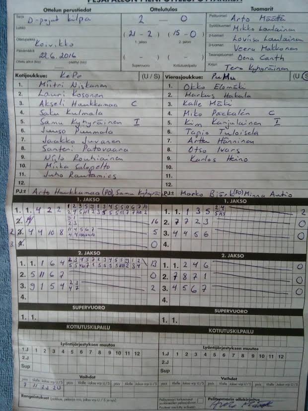 | 22.6.2016 | KePe D | PuMu DP | 2-0 (21-2, 15-0) | näytä | |