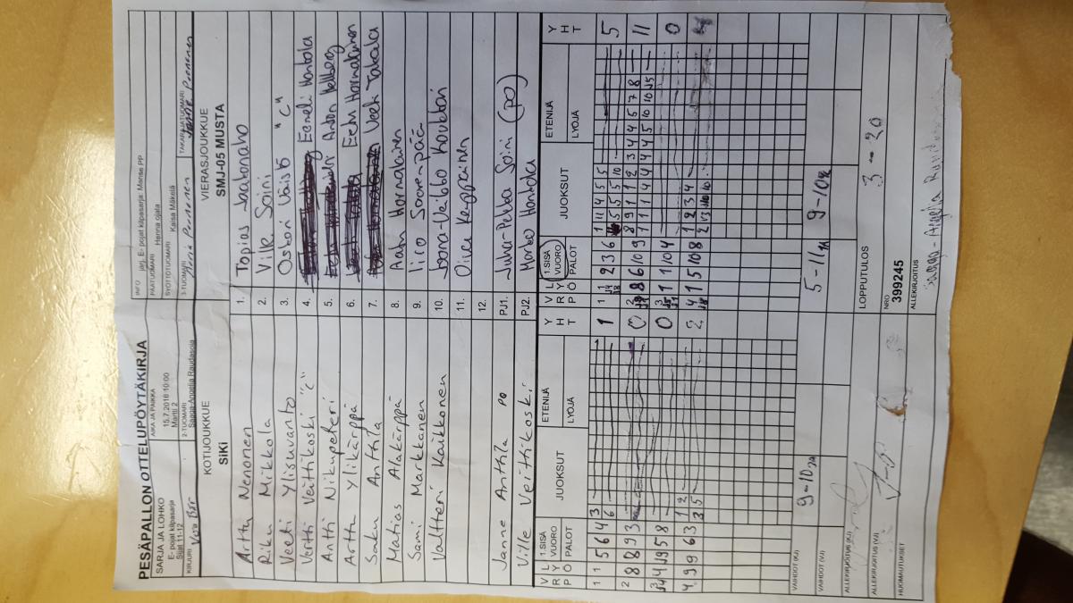 | Sijat 9-10 | 15.7.2016 08:30 | Martti 2 | ViVe | Manse PP | SMJ-05 MUSTA |