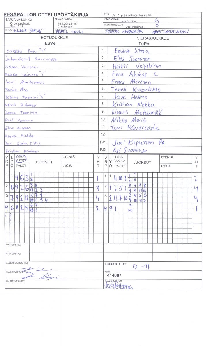 | 30.7.2016 11:00 | 2. Aviasport | EuVe | TuPe | 10-11 | näytä |