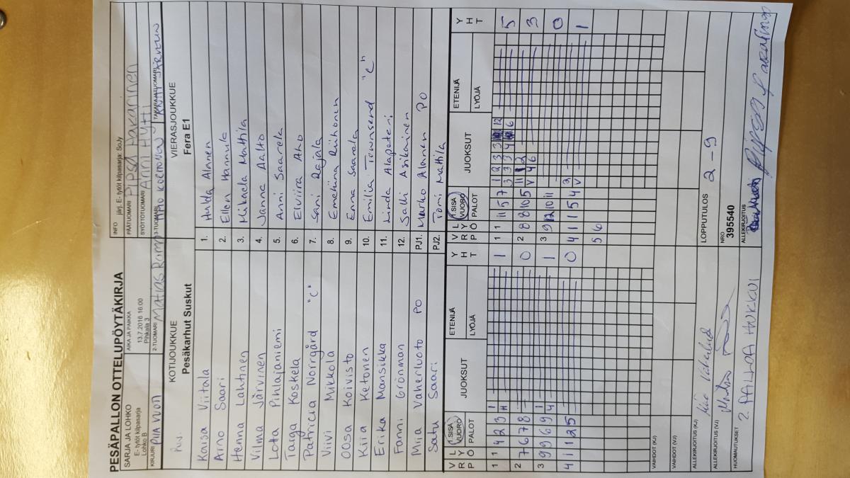 | 13.7.2016 16:00 | Pihkala 3 | Pesäkarhut Suskut | Fera E1 | 2-9 | näytä |
