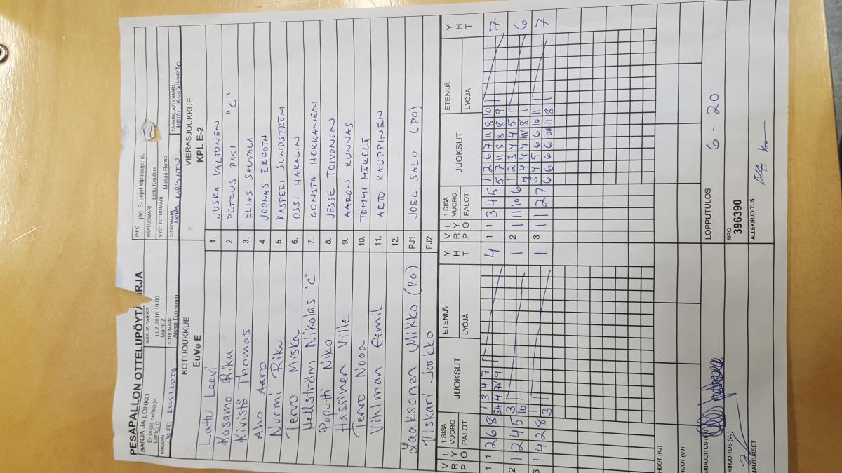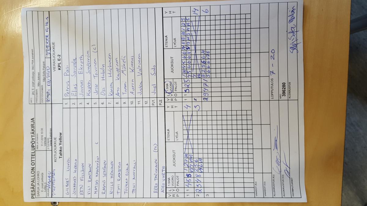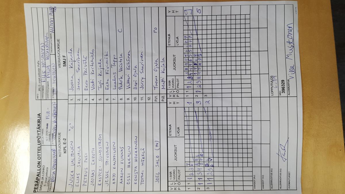 | Jatkolohko E | 13.7.2016 13:00 | Hakala 2 | SMJ P04 musta | SMJ F | KPL E-2 |
